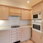 The kitchen leads from the reception room, allowing a social flow. This is a lovely kitchen, with built in appliances and with space for a couple chefs to mill around!