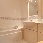 Two bedrooms, one an ample double and one a smaller double complete the living space. The principal bedroom has built in wardrobe storage, and those wonderfully large floor to ceiling windows offer a private outlook. The bathroom has been enlarged compared to the similar apartments in the building, providing a spacious retreat to enjoy, also with shower, and is in very good order.